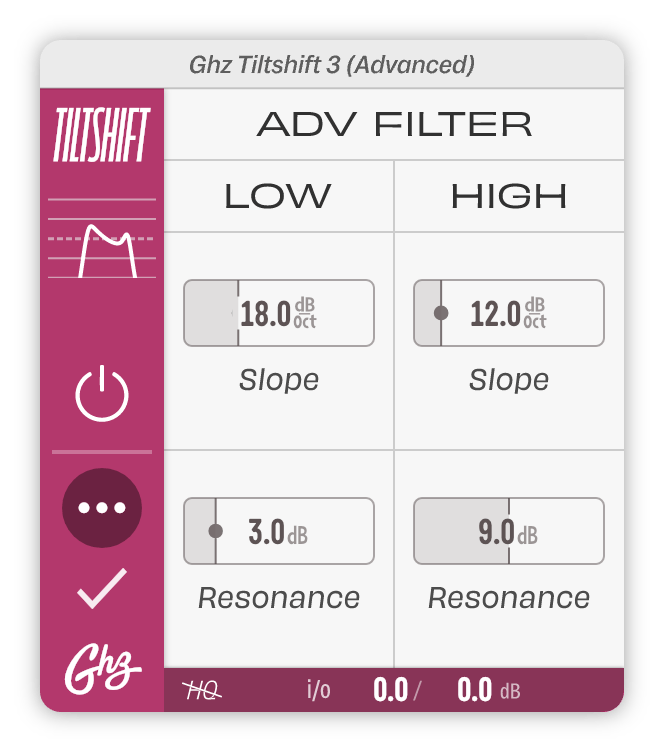 - Totally variable filter slope (from 6 to 48 dB/Oct & anything in-between)