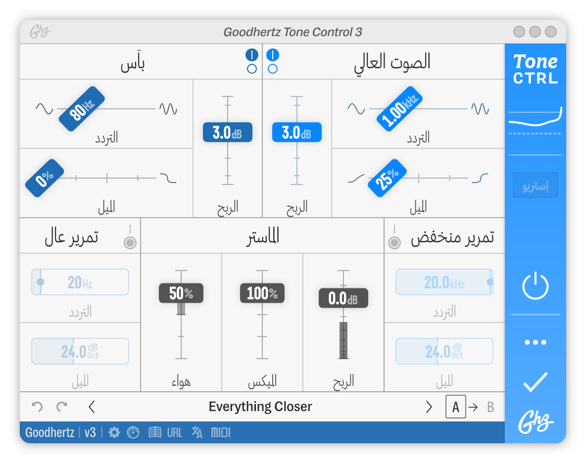 Designed with his original circuit in mind, Tone Control refines and expands the classic tone stack, creating a gorgeous, buttery-smooth equalizer with enough versatility for every track in your mix.